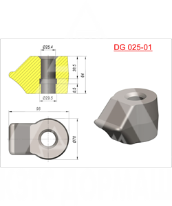 Резцедержатель DG 025-01 с внутренним диаметром 25,0мм под установку траншейного резца РТ25/60-70/15.5 и BTK03. Для буровых установок, которые осуществляют вращательное бурение. Тип основного бурильного инструмента - лопастной бур сварной конструкции. Предназначен для бурения плотных грунтов, известняка.